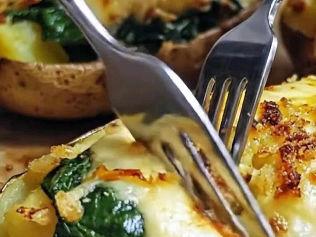 Baked potatoes with spinach make for a delightful main dish but can be complemented with various accompaniments. A simple green salad dressed with lemon vinaigrette balances the richness, while roasted vegetables or a creamy soup can elevate the meal. For drinks, consider a light-bodied white wine, such as Sauvignon Blanc, which pairs perfectly with earthy flavors, or a refreshing lemon-infused sparkling water for a non-alcoholic option.
