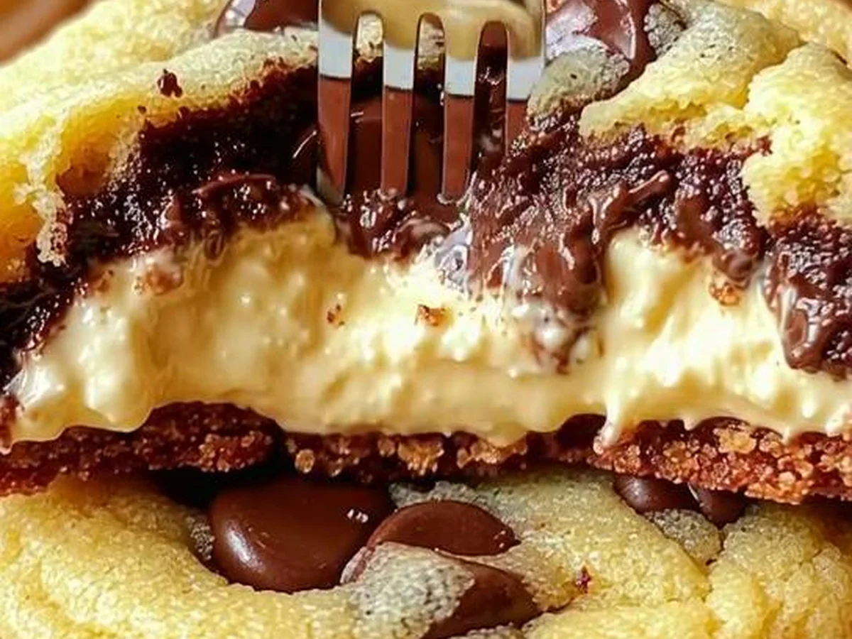 The concept of stuffing cookies with delicious surprises is not new in culinary history, but it has evolved beautifully over time. While chocolate chip cookies date back to the 1930s—believed to have been invented by Ruth Wakefield at the Toll House Inn in Massachusetts—cheesecake has roots that can be traced back to ancient Greece. Combining these two beloved confections might seem modern, but the idea of merging different dessert traditions has always had an appeal. Traditionally, cheesecake has served as a celebratory dish across cultures—from ancient Roman feasts to Jewish holidays—while chocolate chip cookies have been synonymous with home kitchens filled with laughter and warmth. This dish embodies the spirit of fusion cuisine, celebrating the best of varied traditions and demonstrating the creativity of home bakers. It’s a beautiful narrative of how two culinary legacies can blend into a single, unforgettable treat.