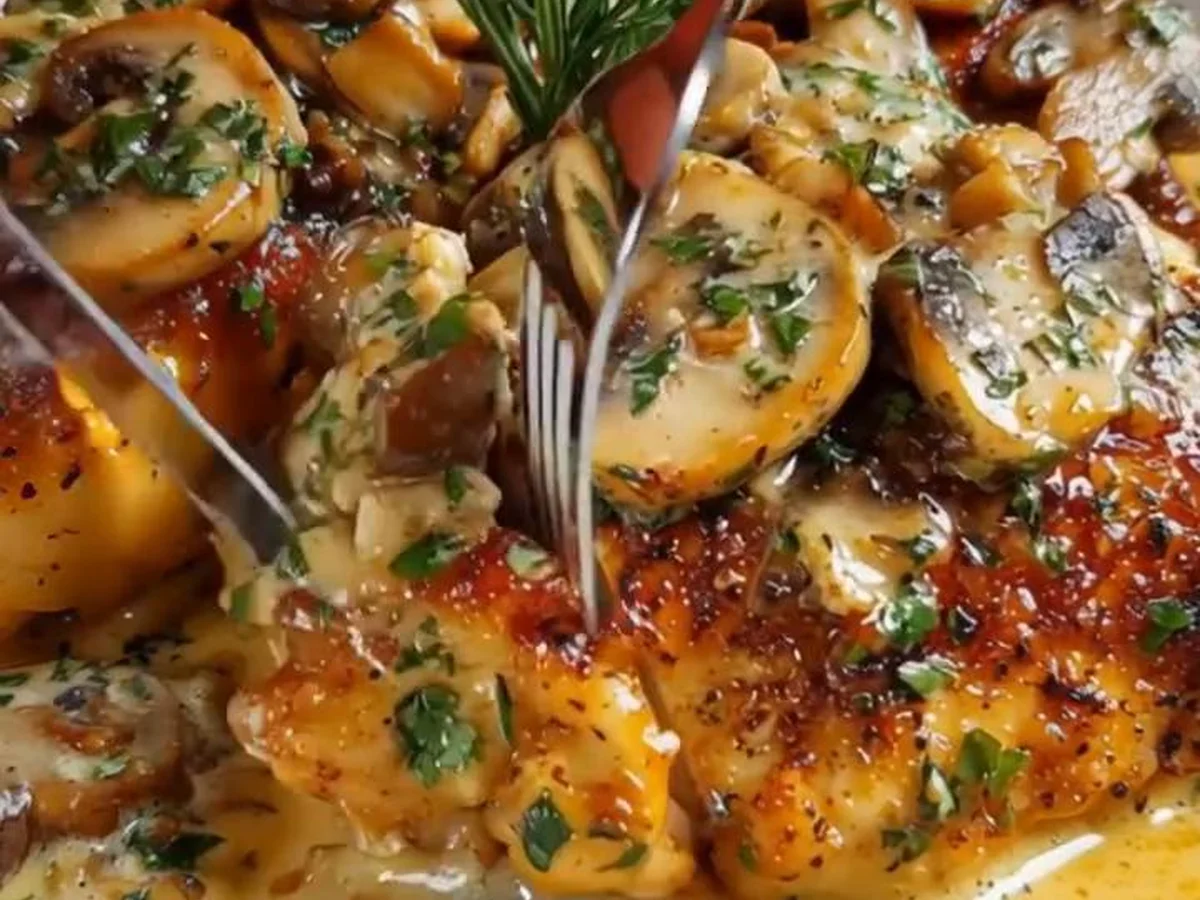 Return the chicken to the skillet, gently mixing it with the mushroom and garlic sauce. Let everything simmer together for 2-3 minutes to allow the flavors to meld.