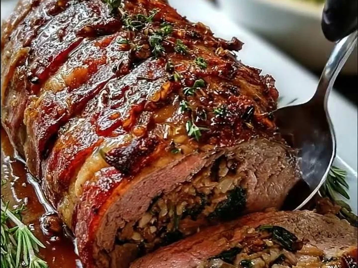It’s a magnificent centerpiece that transforms any ordinary meal into an extraordinary occasion. Each mouthful bursts with rich flavors expertly balanced by fresh greens and savory breadcrumbs, creating an ideal symphony that resonates with both tradition and modern tastes. For many, this stuffed beef roast has become a beloved holiday tradition, gracing tables across the world, uniting us in a collective appreciation for delicious, hearty food, making the cold winter nights feel just a bit warmer.