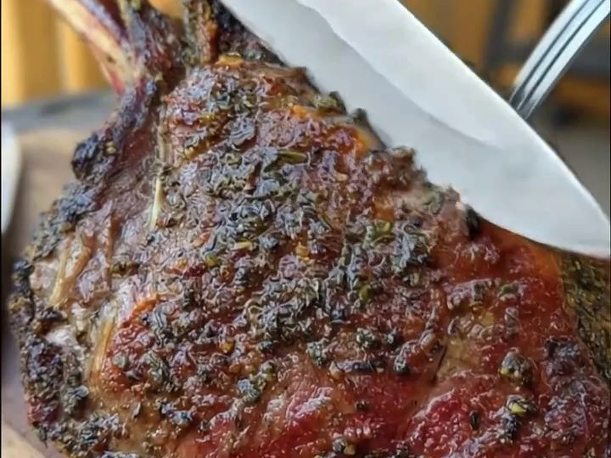 Enjoy your delicious homemade Garlic Herb Butter Crusted Tomahawk Rib Roast !
