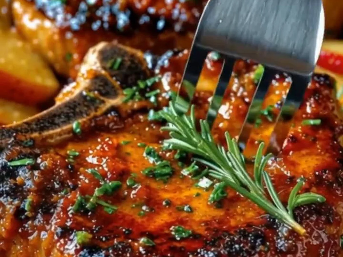 Juicy Apple Butter Pork Chops Ingredients: – 2 bone-in pork chops – 1/2 cup apple butter – 2 tablespoons Dijon mustard – 2 tablespoons olive oil – 1 teaspoon garlic powder – Salt and pepper to taste – Fresh thyme or parsley for garnish (optional) Instructions: 1. Preheat your oven to 400°F (200°C). 2. In a small bowl, mix together the apple butter, Dijon mustard, garlic powder, salt, and pepper until well combined. 3. Pat the pork chops dry with paper towels to remove any excess moisture. This will help them sear nicely. 4. Heat olive oil in a large oven-safe skillet over medium-high heat. Once hot, add the pork chops to the skillet. 5. Sear the pork chops for about 3-4 minutes on each side until they are golden brown and have a nice crust. 6. Once both sides of the pork chops are brown, reduce the heat to medium-low and brush the apple butter mixture generously over the top of each chop, reserving some of the mixture for basting later. 7. Transfer the skillet to the preheated oven and cook for an additional 10-15 minutes, or until the internal temperature of the pork reaches 145°F (63°C). 8. During the last few minutes of cooking, baste the pork chops with the reserved apple butter mixture. 9. Once cooked, remove the skillet from the oven and let the pork chops rest for about 5 minutes before serving. 10. Garnish with fresh thyme or parsley, if desired. Time & Calories – Cooking Time: 25 minutes – Total Time: 40 minutes (including resting) – Calories per serving: Approximately 350 calories per chop (depending on the exact ingredients used)