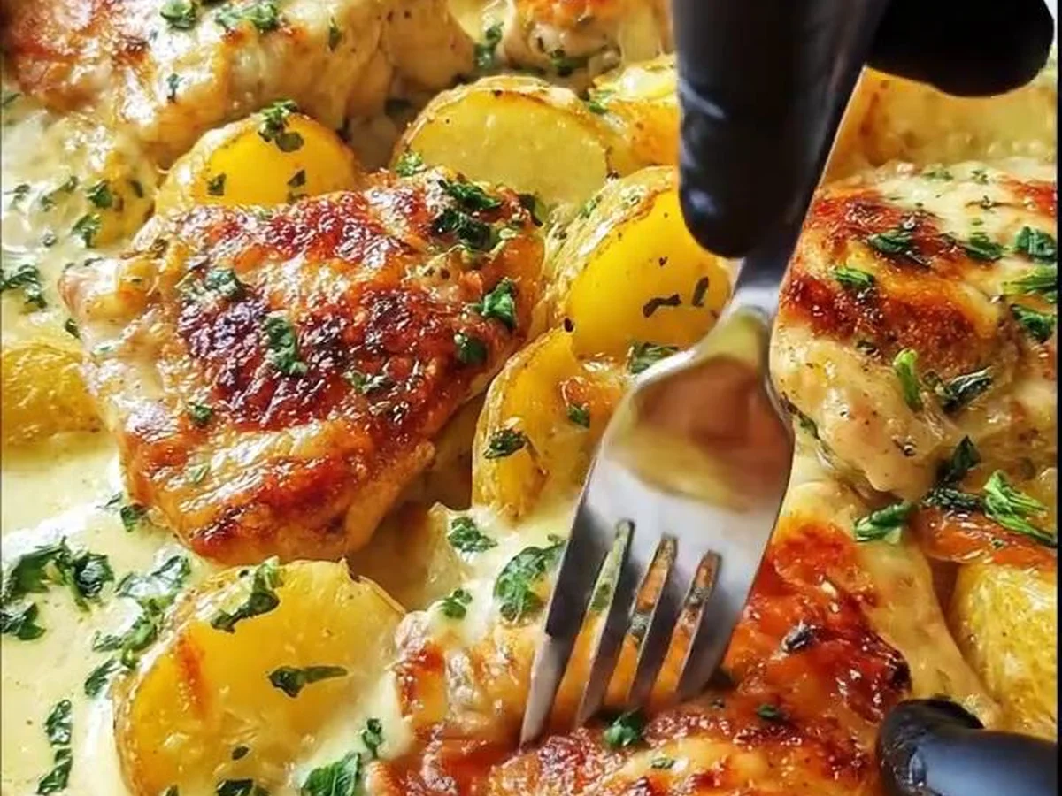 Oven-Baked Chicken with Cheese Sauce and Potatoes