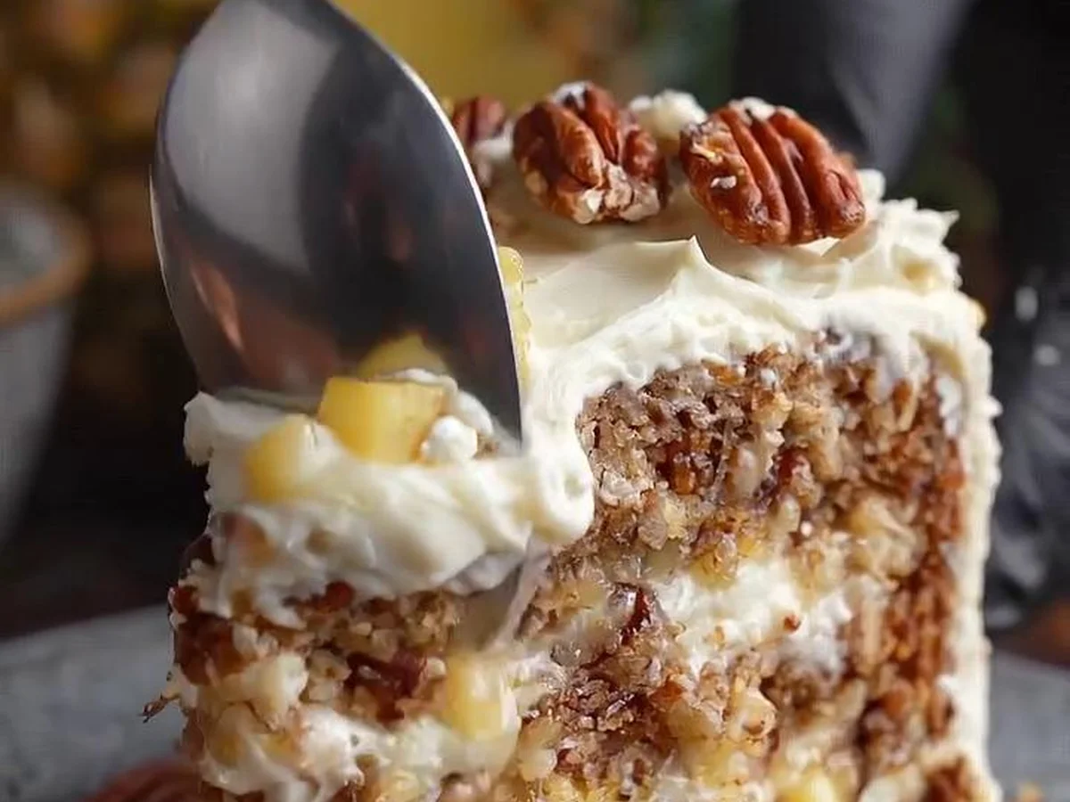 One sunny afternoon, she experimented with combining the tropical sweetness of pineapple and the rich, buttery essence of pecans. After several trials, the Southern Creamy Pineapple Pecan Cake emerged as a delightful creation, quickly becoming a favorite among locals.